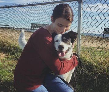 Lola at 8 months was a 75 pound, wild child that loves people so much that she wants to jump all over them. She is now calm, obedient and off leash trained