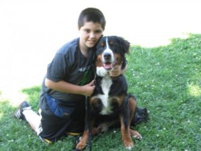 Christian Alquinta and His Bernese Mountain Dog "Max" - 12 year old boy that can handle a 100 pound dog thanks to North Boston Dog Training.