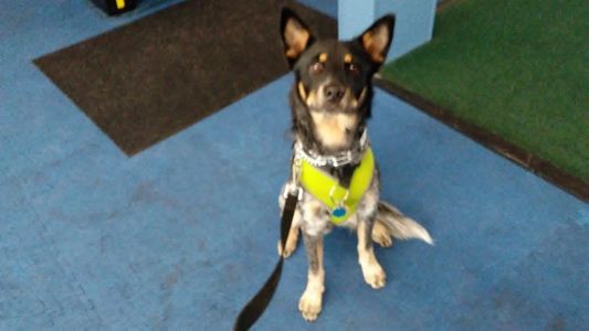 We brought Huck, our 37lb Australian Cattle Dog/Kelpie to Mike for help. We adopted Huck and we were told he knew his basic commands and was "a little mouthy" but an otherwise friendly dog.